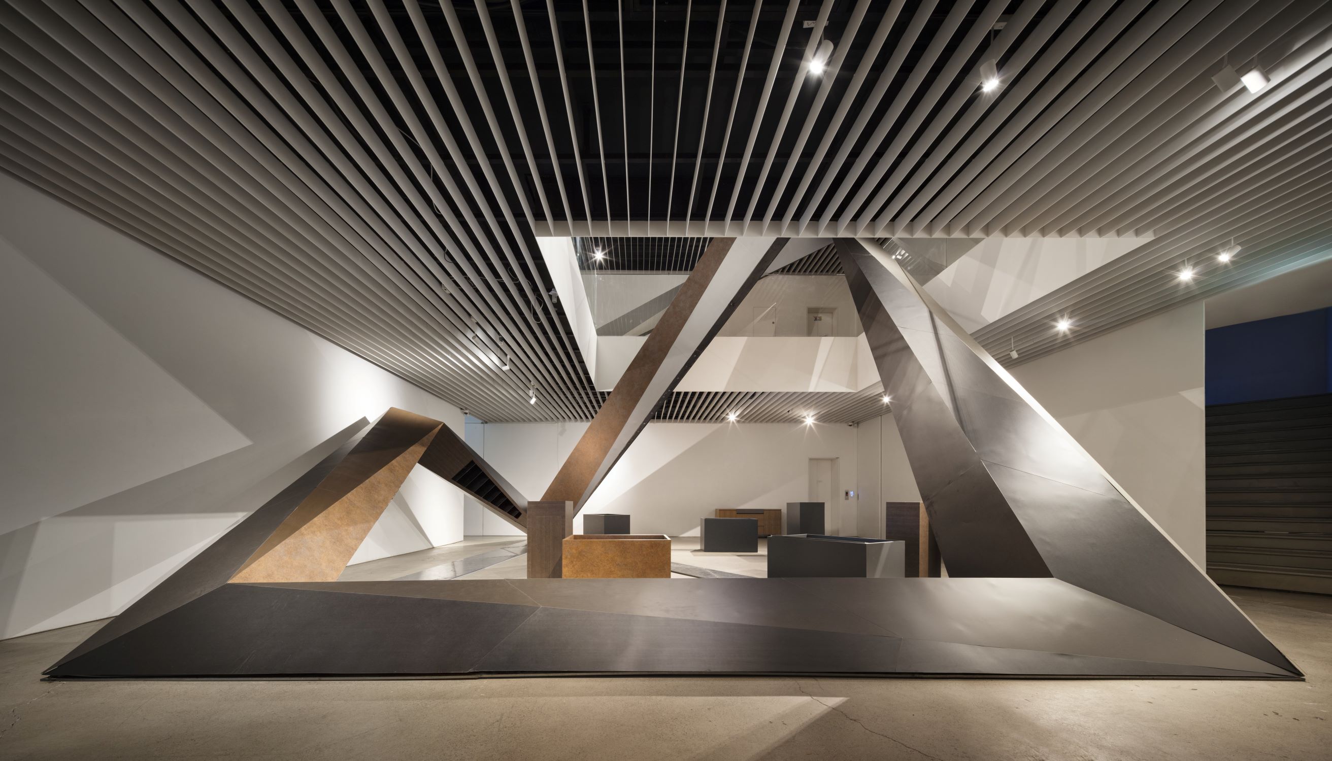 동국제강 그룹과 협업한 '엔들리스 트라이앵글(Endless Triangle)'은 금속이 가진 잠재적 가능성을 측정하고자 하는 열망에서 모티프를 얻었다. 이 프로젝트는 금속의 영원성과 순환성을 상징화하려는 시도다. 삼각형은 구조물을 형성하는 가장 기본적인 단위가 된다. 구조물은 하중을 견디는 배면 패널과 이를 보완하는 럭스틸(Luxsteel) 컬러 패널의 이중 레이어로 구성된다. 이러한 구성은 강인한 남성성과 섬세한 여성성의 상관관계를 연상시킨다.