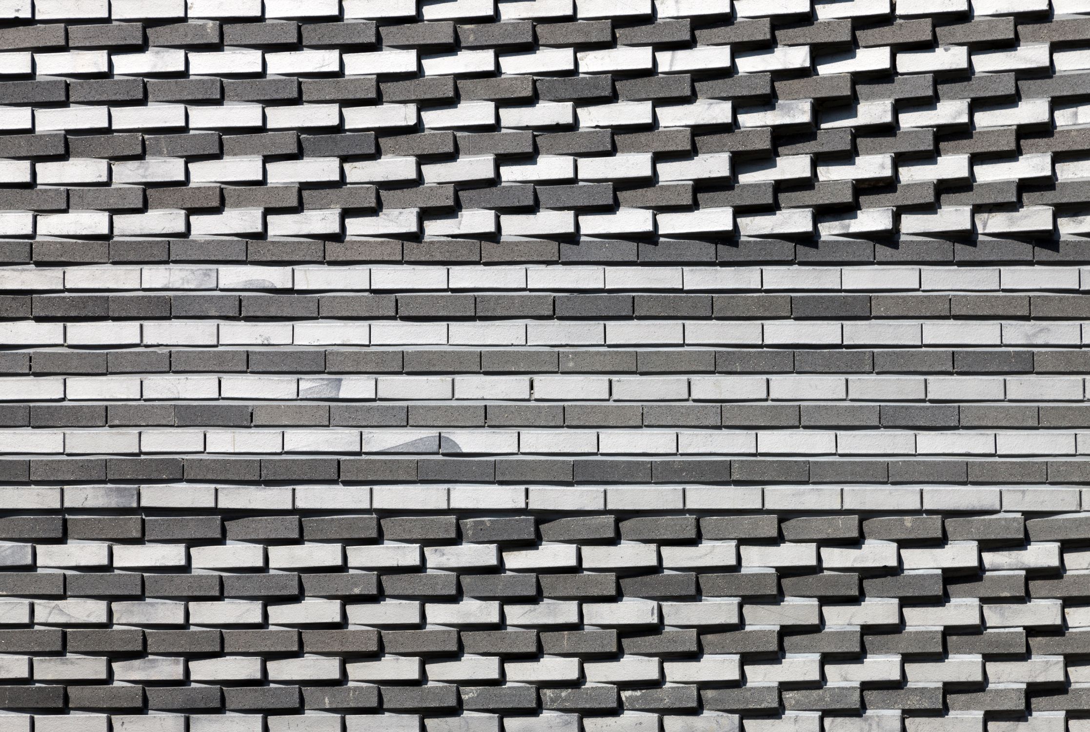 파사드는 세 가지 종류의 벽돌이 서로 다른 각도로 체계적으로 쌓여 구성된다. 이 조립 방식은 마치 물고기 비늘처럼 한 방향으로 끊임없이 흐른다. 벽돌들은 손가락 끝이 맞닿는듯 서로 교차하며 쌓여 입면의 변화감을 만들어낸다. 이러한 새로운 패턴은 새로운 공간적 질서를 유발할 뿐만 아니라, 균질한 주변 풍경 속에서 독자적인 정체성을 부여한다.