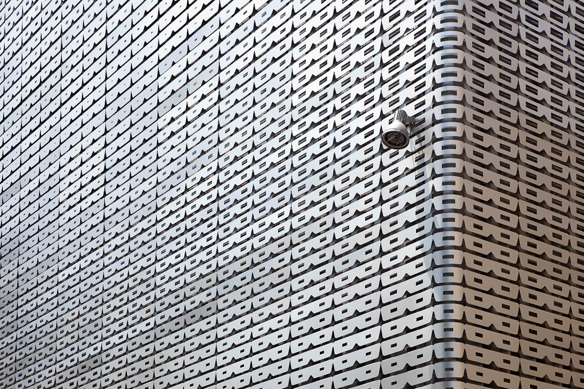‘Countless Glasse’는 조원적 이미지에서 벗어난 안경정의 독특한 건문적 해석을 보여준다. 조기 개념은 안경 모양의 원에서 시작한다.원들의 반복은 파사드에 다양한 패턴을 만들어 낸다. 서로 겹치 어반복하여 정한 이미지를 만들었다. 이렇게 만들어진 이미지는 건 더주의 고향에서 영감을 받은 향의 조금을 상징한다. 안경 하던이 있는 3600개의 피날이 이러한 기존 인에서 상호작용을 하며 파사드를 형성한다. 안경 패턴이 있는 패널은 내부 대널과 외부 대널이 번갈아 배지된다. 다양한 크기의 개구부에 있는 때널과 결합하면 커버링이 풍부한 외관의 질감과 깊이 있는 감도를 가지게 된 다. 다양한 빛의 반사로 인해 표현이 다르게 보이게 한다. 미적인 효과를 높이기 위해 2mm알루미늄 위에 양국 산화 코팅을 했다. 내부 채널과 외부 패널이 교자하면서 패널 브래킷 조립과 구성 방법이 시공에서 중요한 역할을 했다. 3000개의 해널을 지지하는 수직구조와 수정 브레킷, LED 조명은 청일하게 시공되었다. 낮에는 알루미늄(원래 재료)의 느낌을 그대로 살리고, 방에는 특정 LED 프로그 행에 따라 다양한 패턴의 이미지를 만들어 낸다.