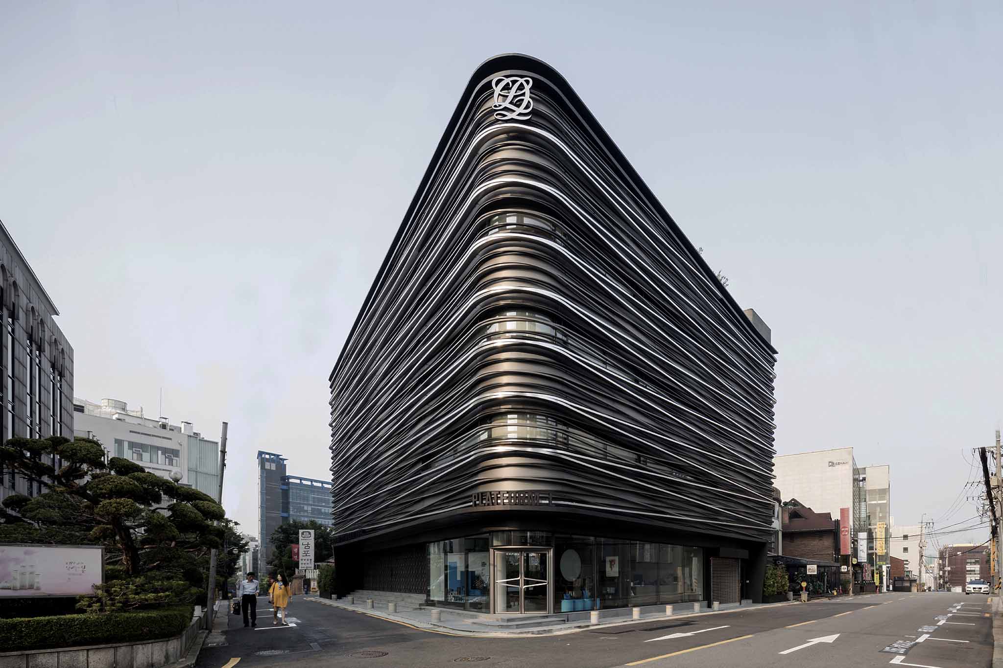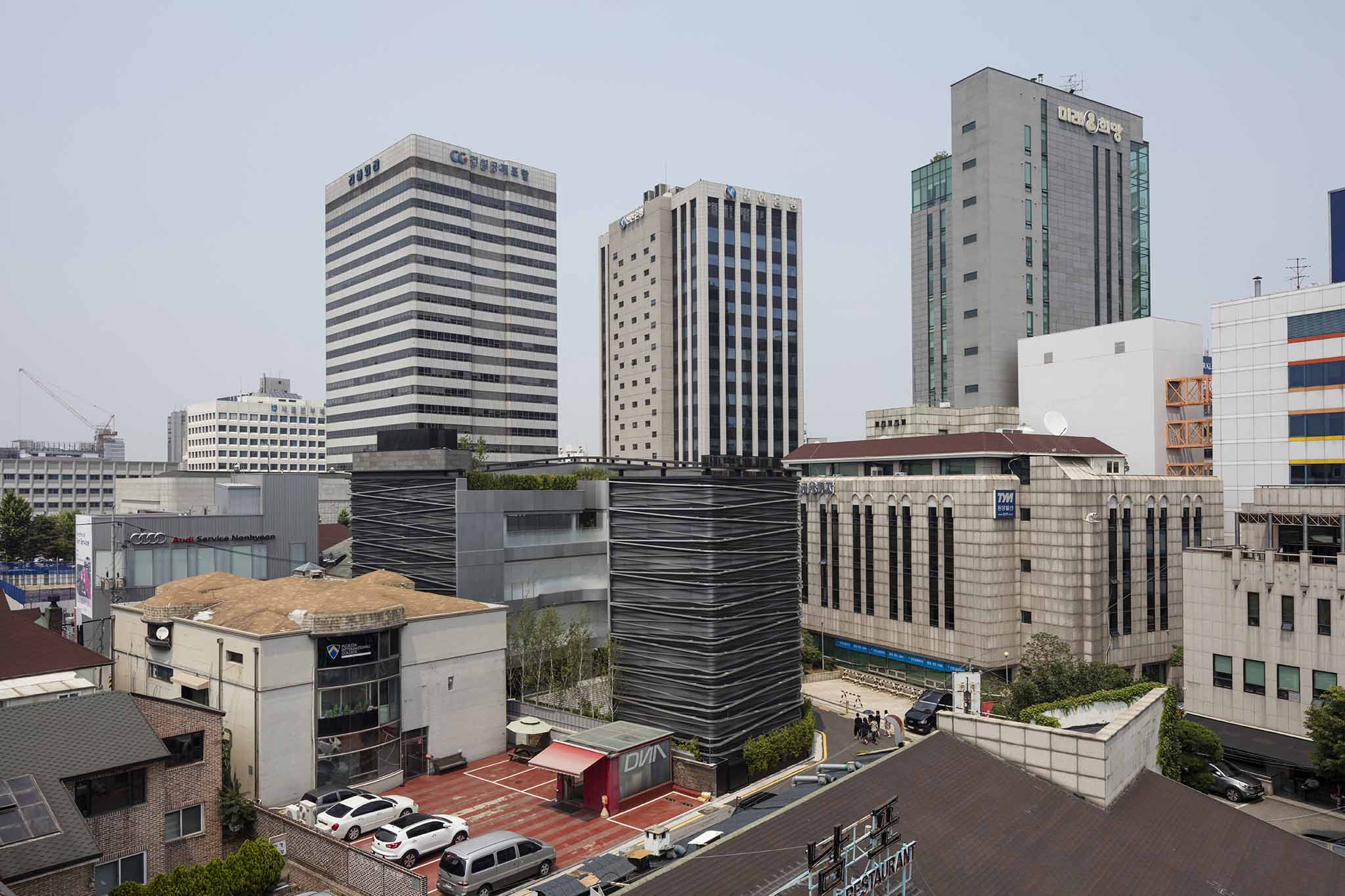 Platform L. Contemporary Art Center은 대한민국 서울 강남구의 주거 지역에 위치하고 있다. 세 개의 면이 거리로 둘러싸여 있는 불규칙한 사다리꼴의 형태의 대지는 디자인 과제였다. 건폐율을 전체 부지면적의 60% 이하로 제한하는 건축법 규정은 플랫폼-L 설계에 있어 핵심적인 요소였다. 이러한 제한으로 인해 일반적으로 대부분의 프로젝트는 주차장을 지상에 배치하고 나머지 부지를 덮는 큰 매스로 지정한다. 하지만 Platform-L 은 주차장을 지하에 배치하여 경사진 땅을 비울 수 있게 구성하였다. 서쪽으로 열리는 중앙 안뜰이 있는 두 개의 독립된 매스를 설계한 것이 가장 효율적인 공간 활용으로 입증되었다. 북쪽 끝의 매스는 박물관 입구, 두 개의 전시 공간, VIP 라운지로 구성되어 있으며 도시 경관을 조망할 수 있는 옥상 테라스가 있다. 부지 남쪽 끝에는 카페/레스토랑과 사무 공간이 있다. 외부 파사드 디자인은 패션 디자인 회사 루이 콰토르제(Louis Quatorze)에서 영감을 얻었다. 이 회사는 Platform-L의 스폰서이며 이념은 루이 14세를 기반으로 한다. 루이 14세의 기본 기하학을 재해석하여 플랫폼-L의 파사드 디자인으로 사용했다. 이 디자인은 패션과 문화에 대한 높은 가치와 회사의 새로운 상징으로 자리 잡았다.