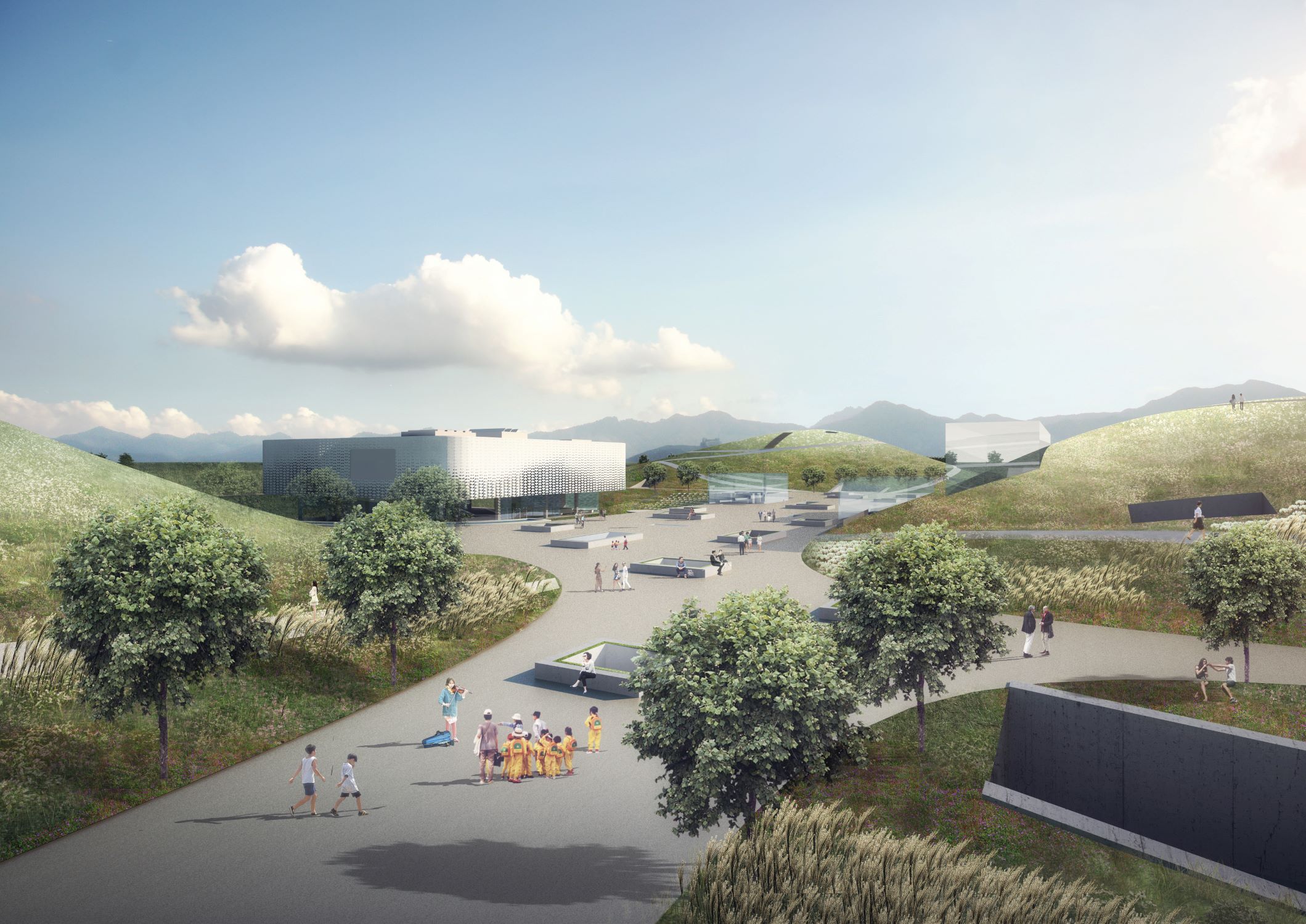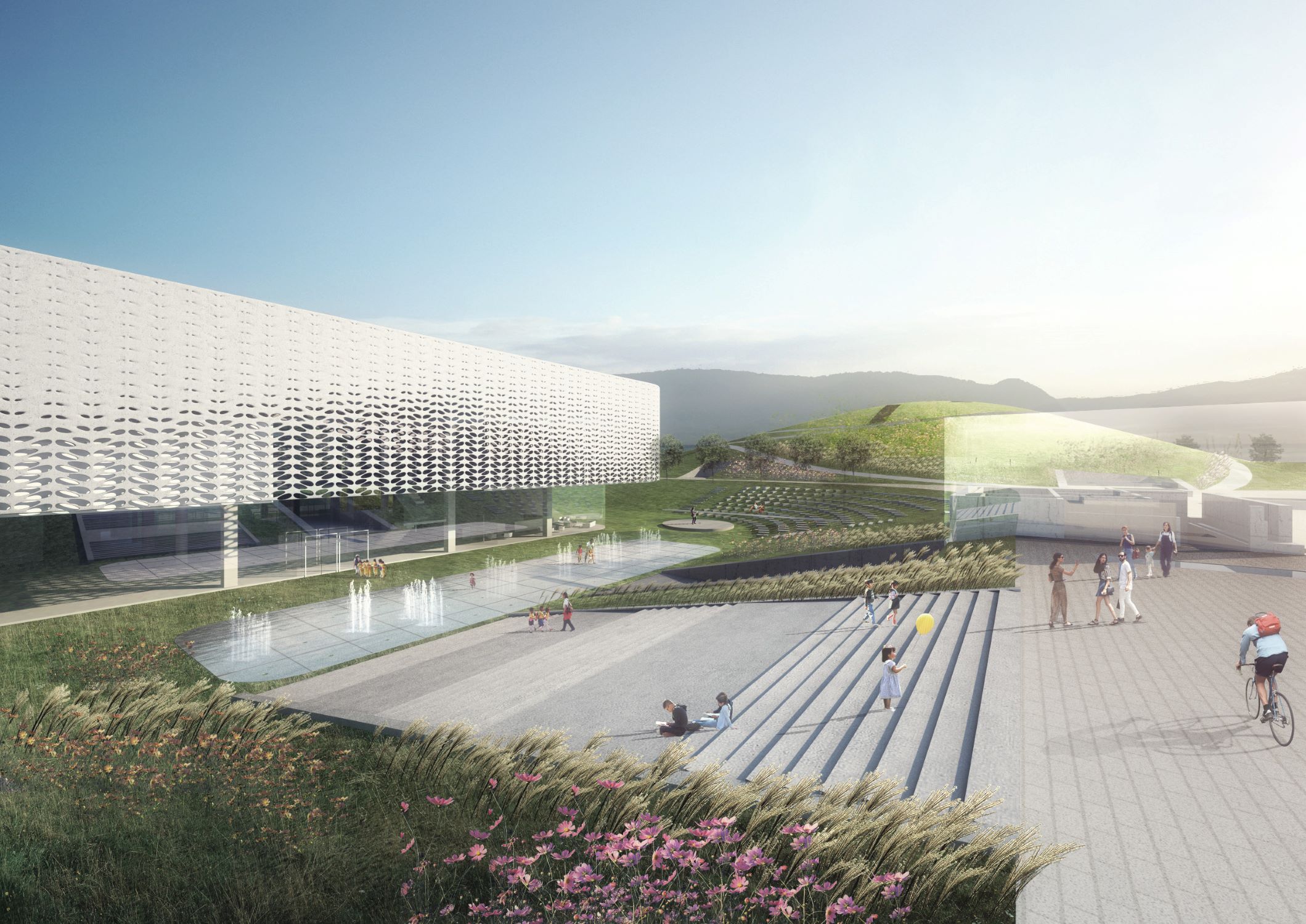 한국의 전통적인 공간 구성은 주어진 대지와 주변의 자연을 최대한 활용하여 주어진 특정 공간 안에서 자연을 재구성하는 것이 특징이다. 대부분의 땅이 산으로 둘러싸인 한국의 자연조건은 자연 속에서 주어진 땅을 어떻게 해석하고, 가장 조화롭게 새로운 공간을 만들 것인가라는 질문과 맞닿아 있다. 예를 들어 경주 안압지 연못의 경우 인공 연못을 조성하면서 투시도상 공간을 넓히기 위해 연못에 곡선을 만들었다. 이처럼 신라와 백제 왕조의 왕릉은 주변 산지의 지형적 조건 속에서 하나의 집단으로서 새로운 형태적 정체성을 보여주었다. 이러한 자연과 대지에 대한 해석을 바탕으로 산으로 둘러싸인 지형에 새로운 의미를 부여하는 행위는 한국의 전통적인 공간에서 자연을 해석하는 맥락과 유사한 의미를 지니고 있다. 이 프로젝트는 공평하게 조정된 대지 위에 지어지며 주변의 산과 새로 만들어진 언덕이 만나는 지점에서 시작된다.